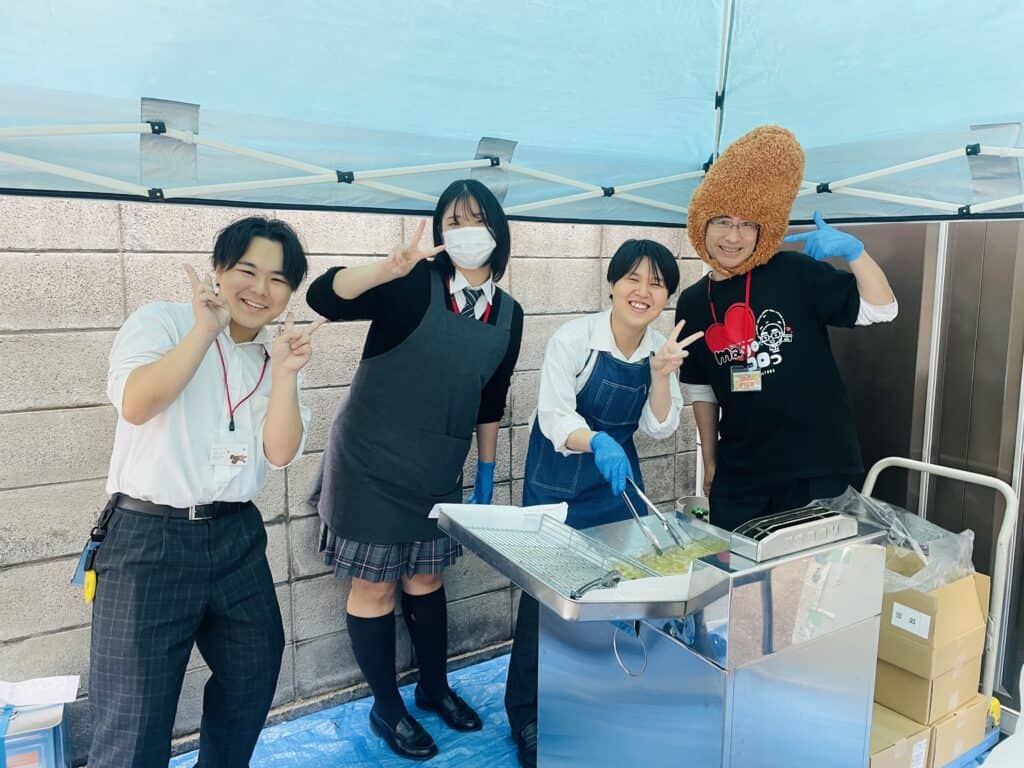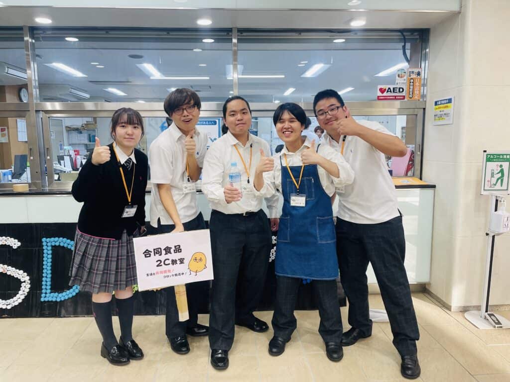 合同食品ブースでは、生徒と企業の方がイチから開発したコロッケを販売!