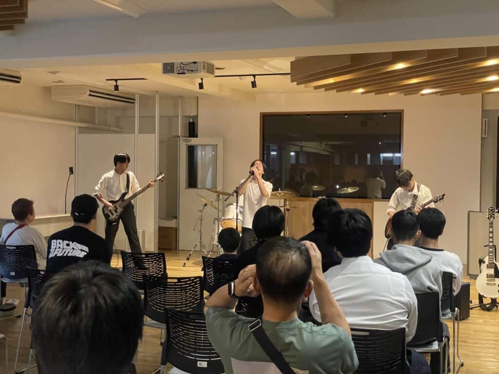 6Fの多目的ホールでは天王寺区役所様による「水に関するSDGsの取り組み」、合同食品会社様による「食育に関する講和」、クラーク天王寺校のインターナショナルコース、軽音部によるステージ発表などたくさんの講演がありました。
