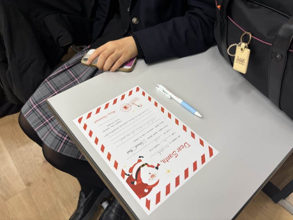 インターナショナルコース生たちは、自分の願いを書いた英語の手紙をサンタに渡し、
