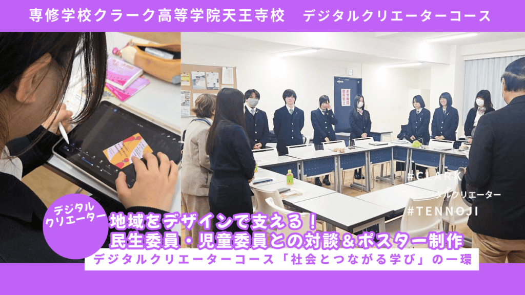 クラーク天王寺校のデジタルクリエーターコースは、プロのクリエイターから直接指導を受け、アナログとデジタルの両面から技術の向上を図りながら、楽しんで学べることが魅力です。 社会とつながる学び:民生委員・児童委員との対談で地域支援を深掘りしま... -