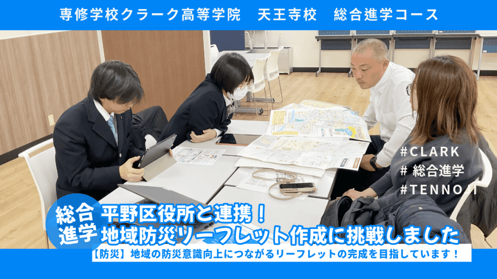 【天王寺】平野区役所と連携!地域防災リーフレット作成に挑戦【総合進学】