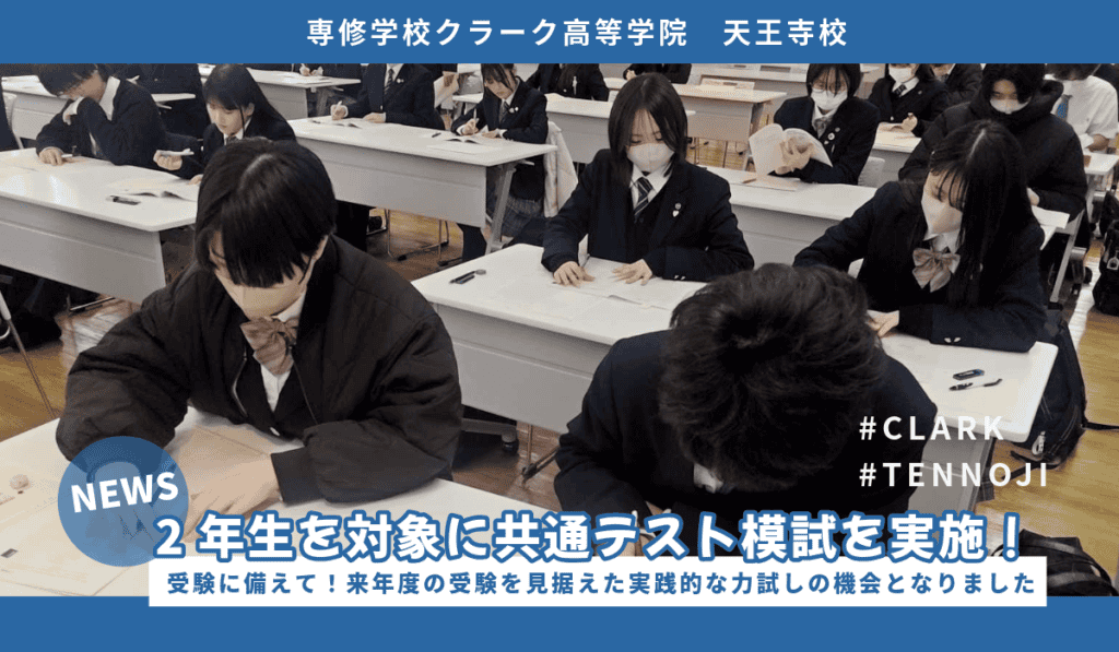 クラーク天王寺校は、生徒の進路実現に向けて様々な授業や指導を計画的に取り入れ、生徒一人ひとりの夢を実現へと導きます。 2年生を対象とした共通テスト模試を実施しました 2月7日(土)、2年生を対象とした共通テスト模試を実施しました。本模試は、共... -