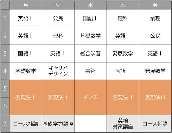 「演技」・「ダンス」・「声優」・「アクション」・「歌唱」といった、表現教育に関わる5領域を総合的・横断的に学ぶことができるカリキュラムを設計。1つの領域に縛られない多彩な表現教育を通して、高い表現力を身につけます。