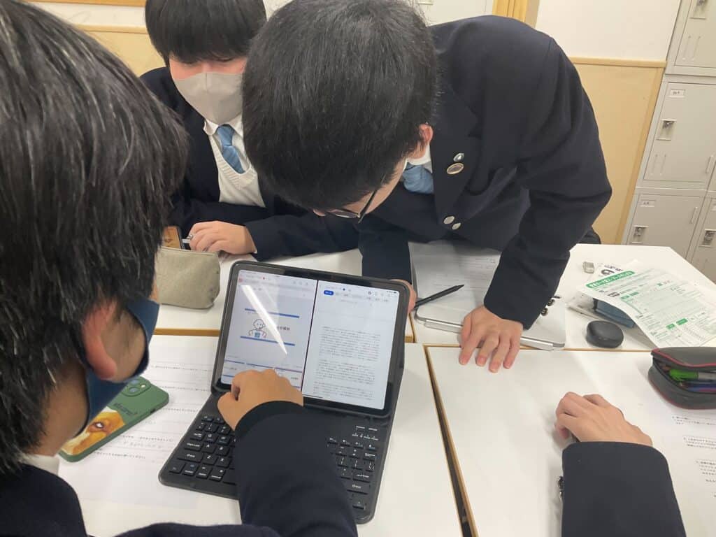このプログラムは、全国の中学校・高校でも導入されている探究学習の一つで、他校の生徒の意見や視点も共有される仕組みがあります。多様な考えに触れながら、自分の視点をつくり、問いを深めていく学びを実現しています。