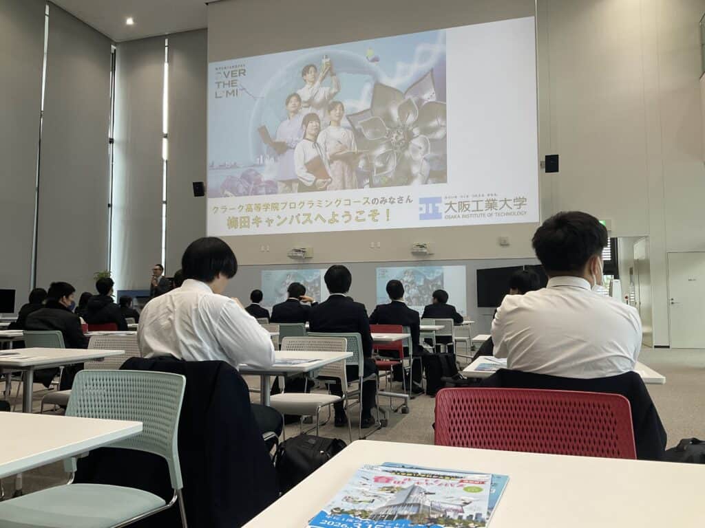 プログラミングコース1年生全員を対象に、進路指導の一環として大阪工業大学の見学会を実施しました。高校生活の早い段階で大学の雰囲気や学びの場を体験することは、将来の進路を考えるうえで非常に有意義です。