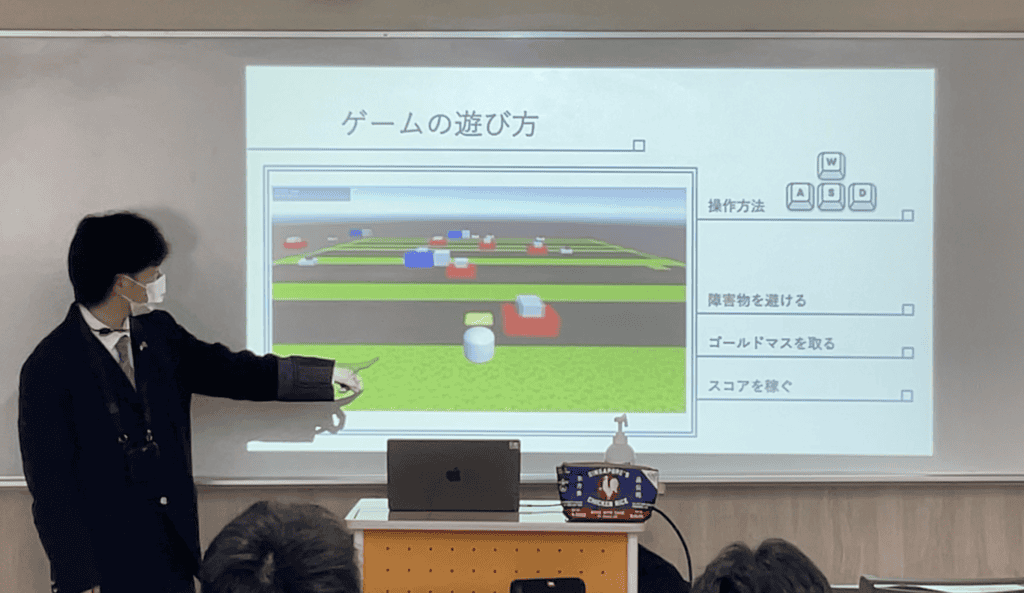 中には、教材の枠にとらわれず、ゼロから完全オリジナルのゲームを制作した生徒もおり、これまでに身につけた技術を応用する力が、確実に育っていることが感じられました。