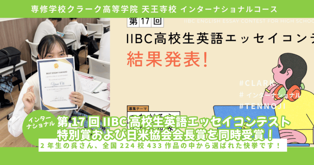 【天王寺】2年生・呉さんが全国大会で特別賞・日米協会会長賞を受賞!英語エッセイで世界への視野を表現【インターナショナル】
