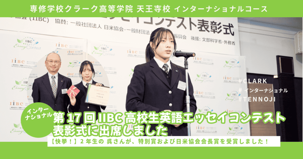 【天王寺】快挙!第17回 IIBC高校生英語エッセイコンテスト表影式に出席しました【インターナショナル】