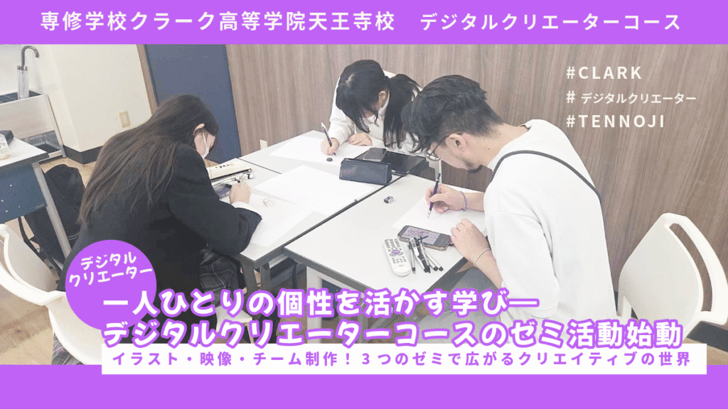 クラーク天王寺校のデジタルクリエーターコースは、プロのクリエイターから直接指…