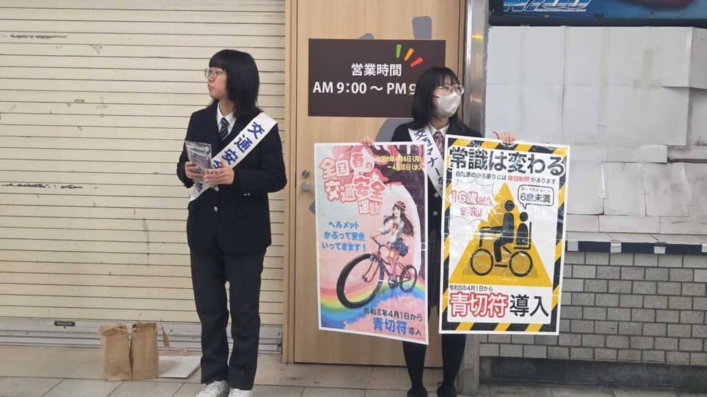 「ヘルメットを被りましょう」大阪星光・四天王寺の生徒らも交通ルール呼びかけ 大阪の自転車事故は10代が…