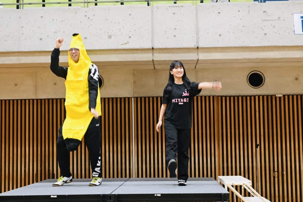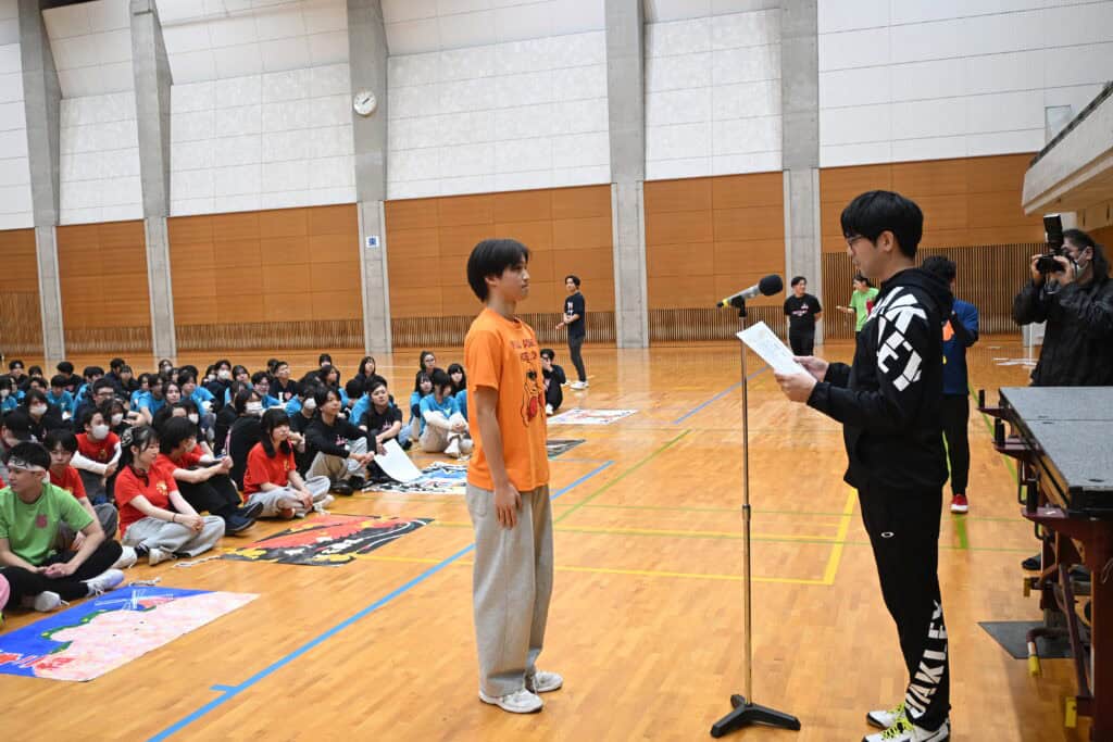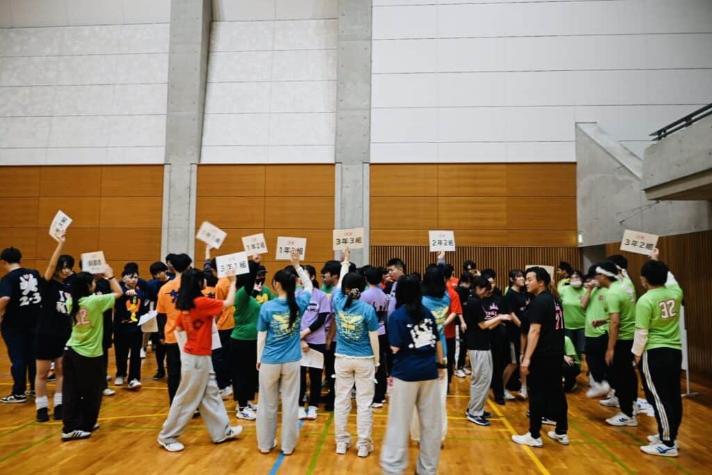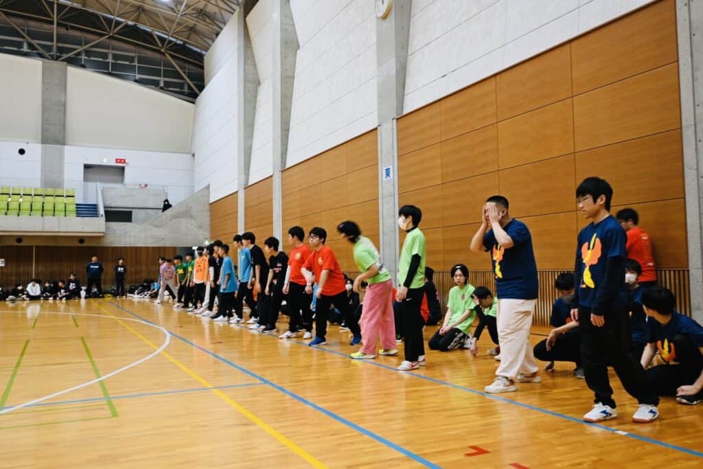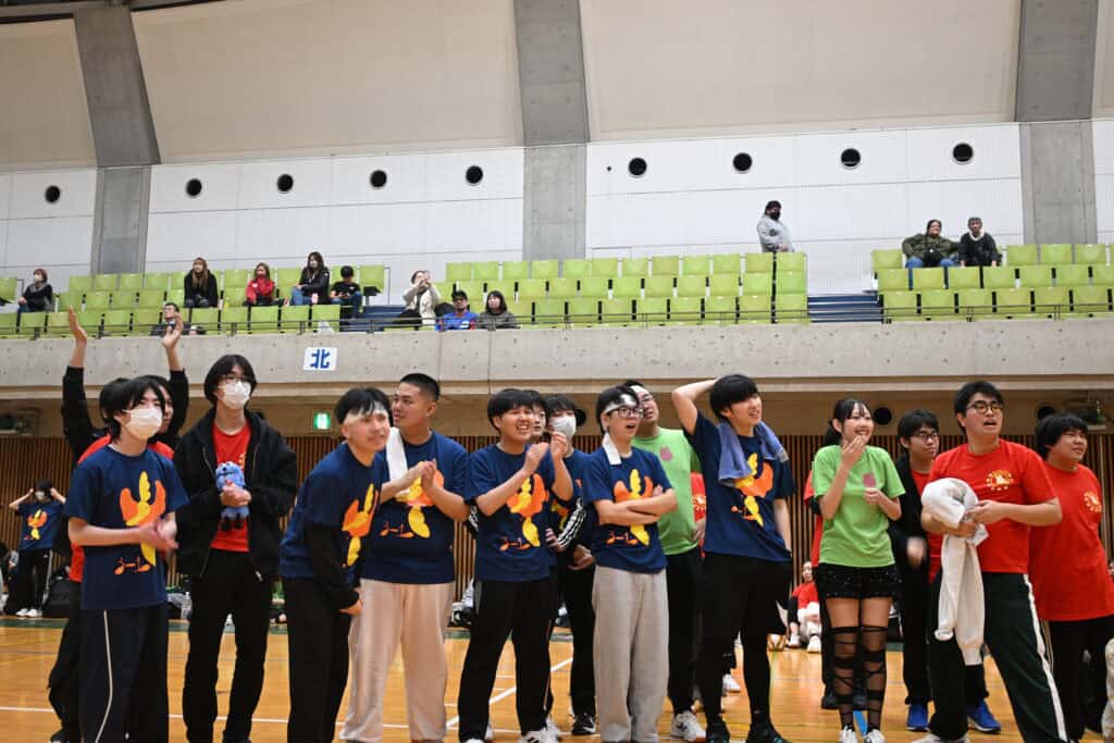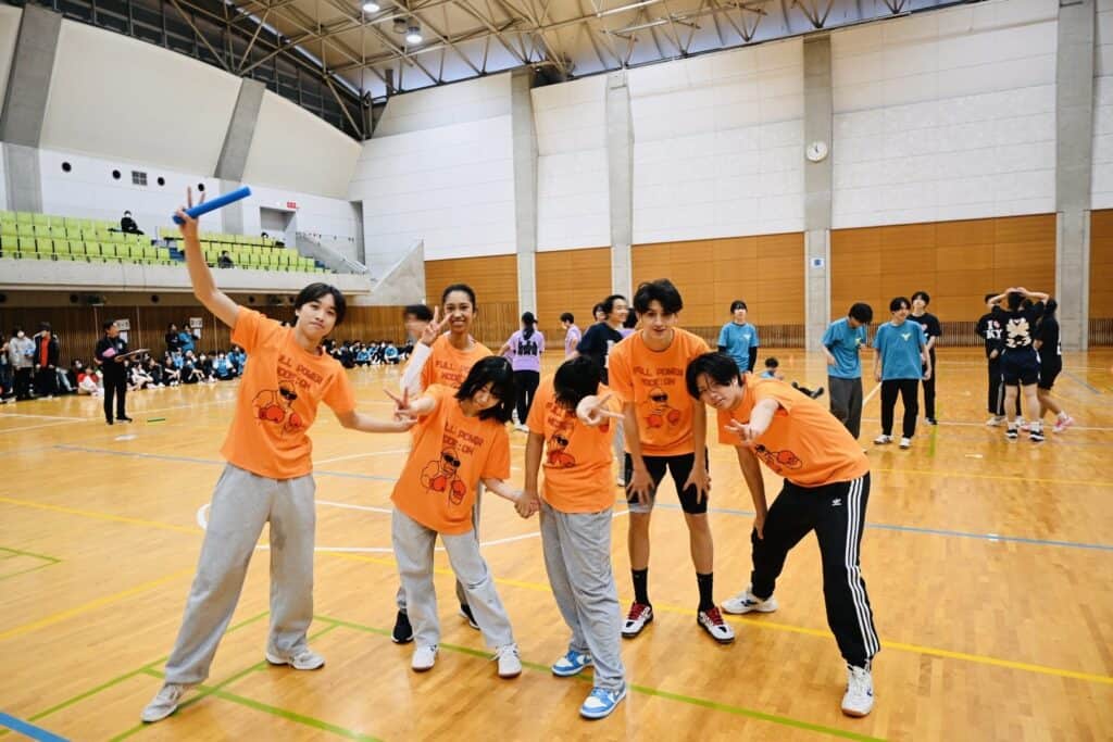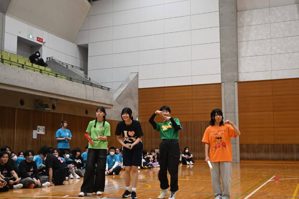 今年は先生たちもダンスや競技に積極的に参加し、体育館の空気をさらに盛り上げてくれました。エキシビションの「みんなで踊ろう」では、こっそり練習していた振付を披露し、会場は笑顔と声援に包まれました。もう一つのエキシビジョン種目「コース対抗リレー」もコースの威信をかけて、奮闘していました。