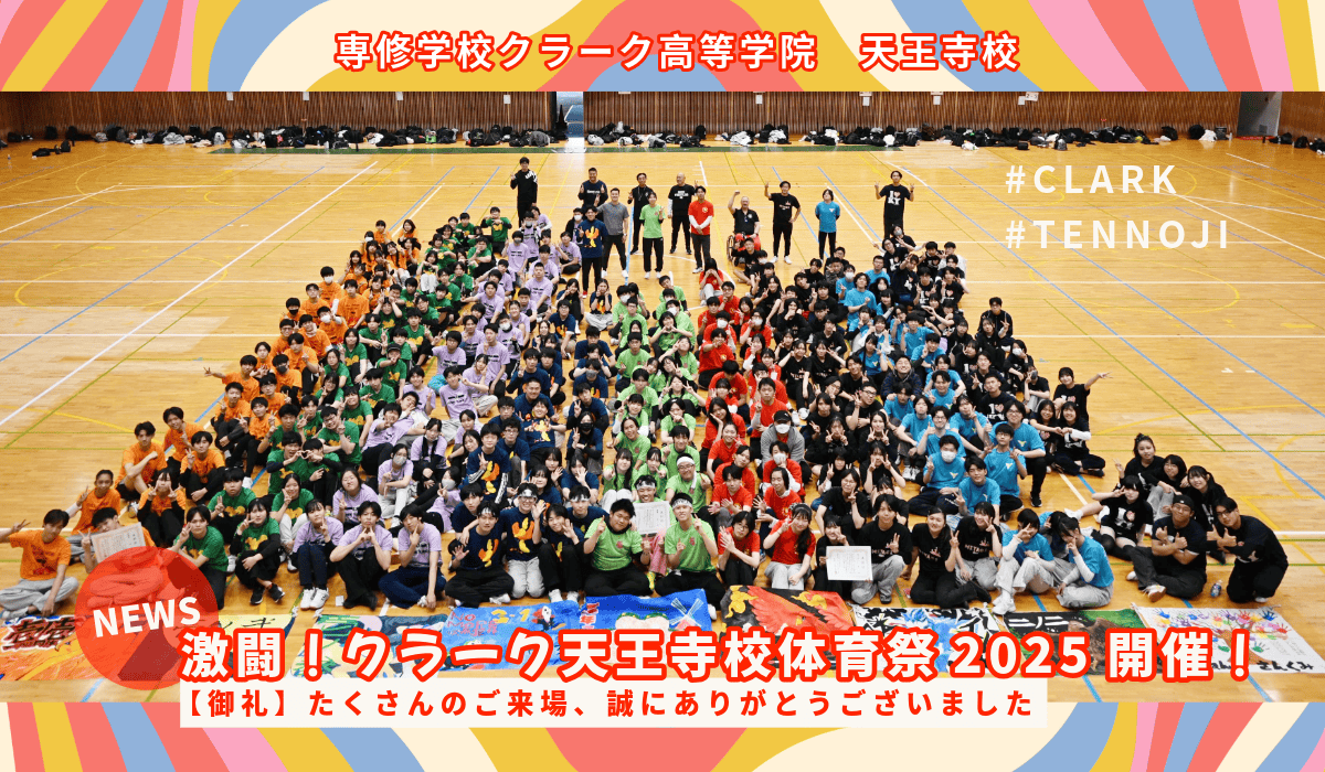 11月17日(月)、クラーク記念国際高等学校 天王寺校では、体育館にて体育祭を開催しました!朝からワクワクした表情の生徒たちが続々と体育館に集まり、終始笑い声が響き渡る、にぎやかで温かい体育祭となりました。