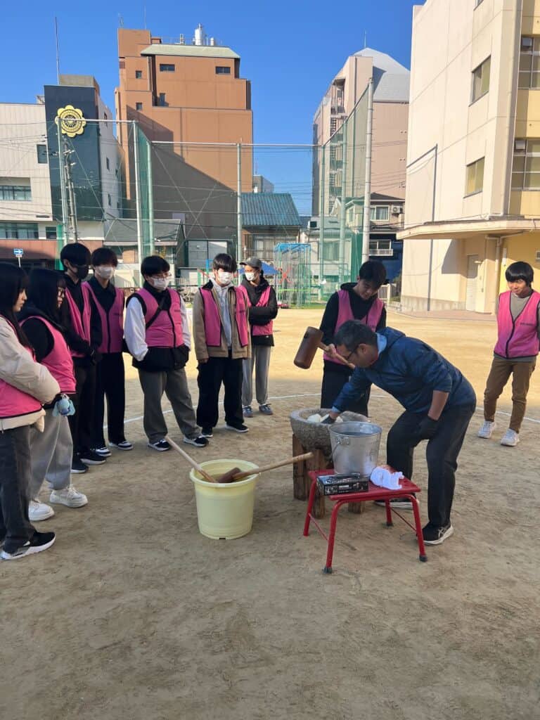 本校の生徒が、天王寺区立桃陽小学校で開催された「もちつき大会」にて、運営補助ボランティアとして参加しました。