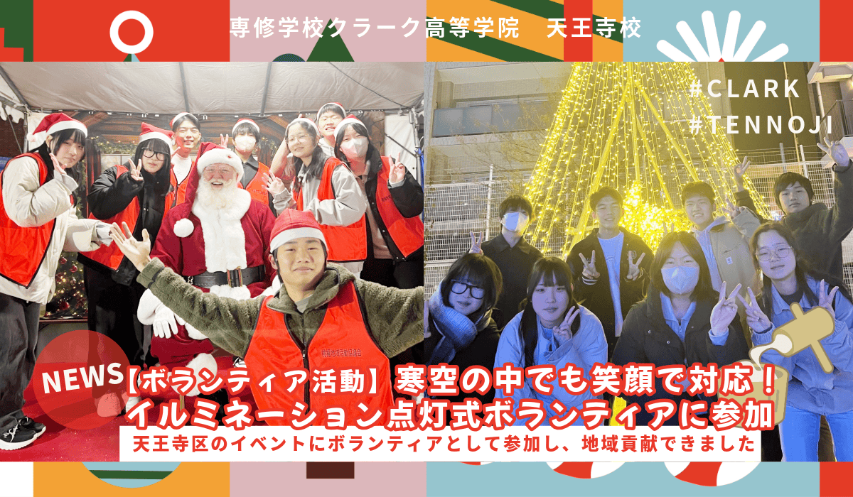 クラーク天王寺校では地域のイベントのお手伝いをさせていただき、地域の人たちとの交流を大切にしています。地域のボランティア活動に積極的に参加させていただいているのは、生徒の教育の一環とも考えています。